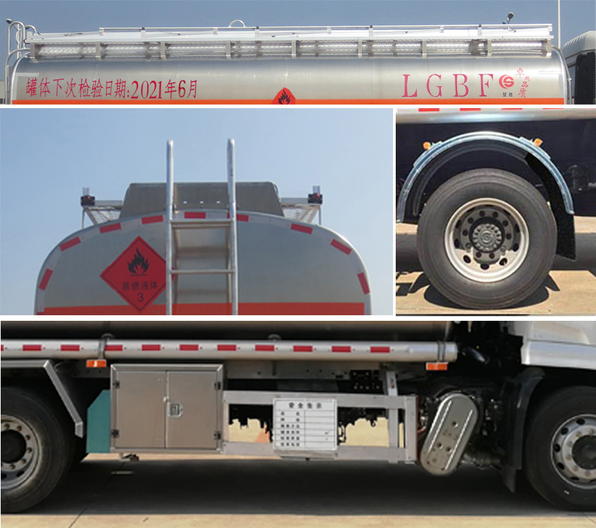 | 配置 | 1、該車適用于危險品運輸,運送危險貨物車輛類型為:FL型,類項號:3。罐體有效容積:16.6立方米,運輸介質(zhì):汽油,密度:700千克/立方米,罐體外形尺寸(長×寬×高)(mm):5700×2300×1600。2、側(cè)/后防護材料為鋁合金,螺栓連接。后防護截面尺寸120×60mm,下邊緣離地高500mm。罐體上部選裝上走道,選裝弧形擋泥板,選裝右側(cè)防護樣式。3、僅采用軸距(mm):4700。后軸采用空氣懸架。隨底盤選裝駕駛室前面罩,選裝側(cè)窗玻璃;駕駛室頂部中間三個裝飾燈為選裝件;前霧燈為選裝件;駕駛室前臉擾流罩為選裝件。僅選用排氣管前置、限速裝置(限速80km/h)、前輪盤式制動及子午線輪胎的底盤;安裝帶有衛(wèi)星定位功能的行駛記錄儀;ABS型號/生產(chǎn)廠家:3631010-C2000/東科克諾爾商用車制動系統(tǒng)(十堰)有限公司。采用的發(fā)動機與油耗值(L/100Km)對應(yīng)關(guān)系為: B6.2NS6B210/26.5,DDi50E190-60/23.9。 該車后軸為采用空氣懸架.轉(zhuǎn)向輪安裝輪胎爆胎應(yīng)急防護裝置。該車型可選裝ETC車載裝置. | ||
