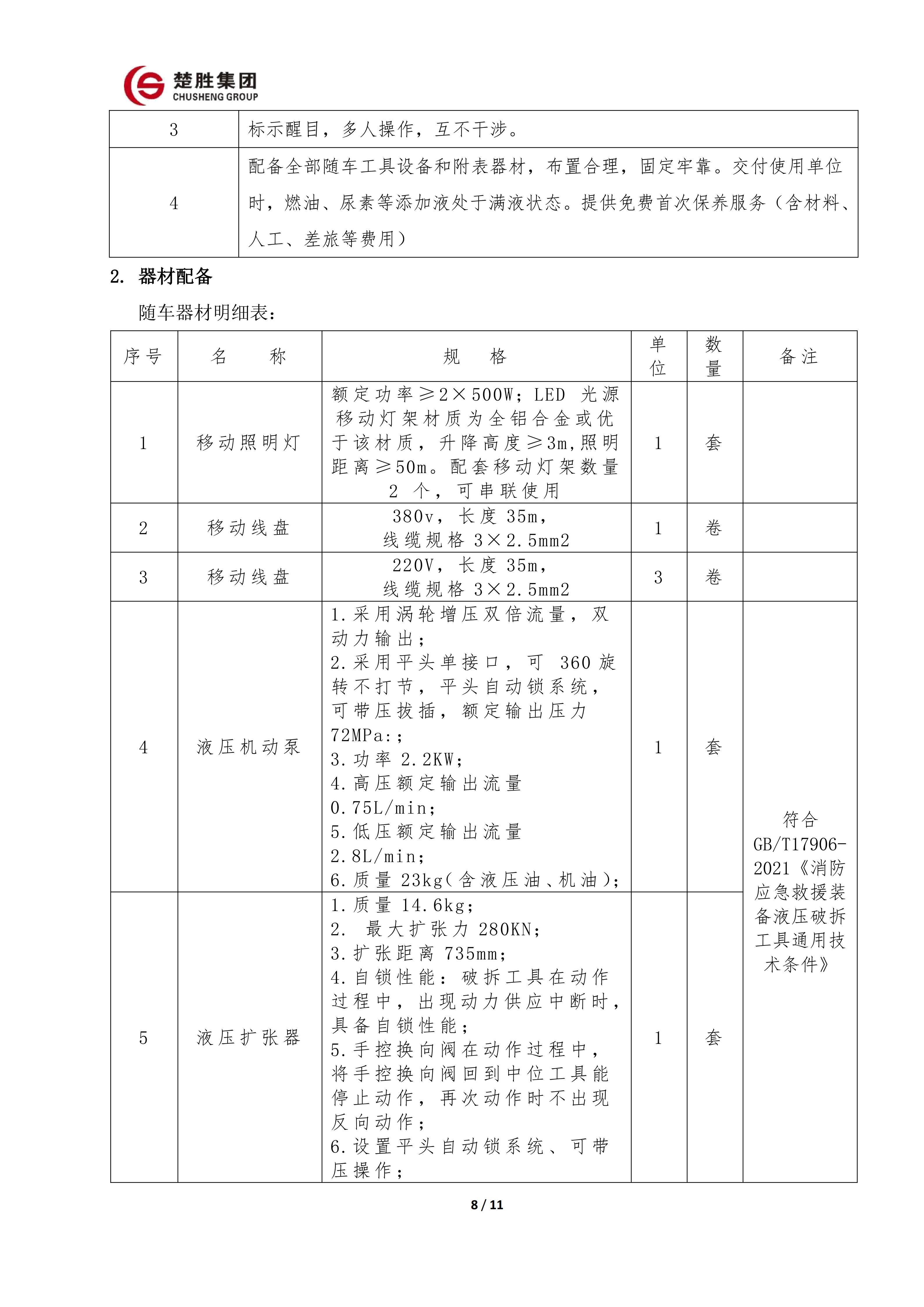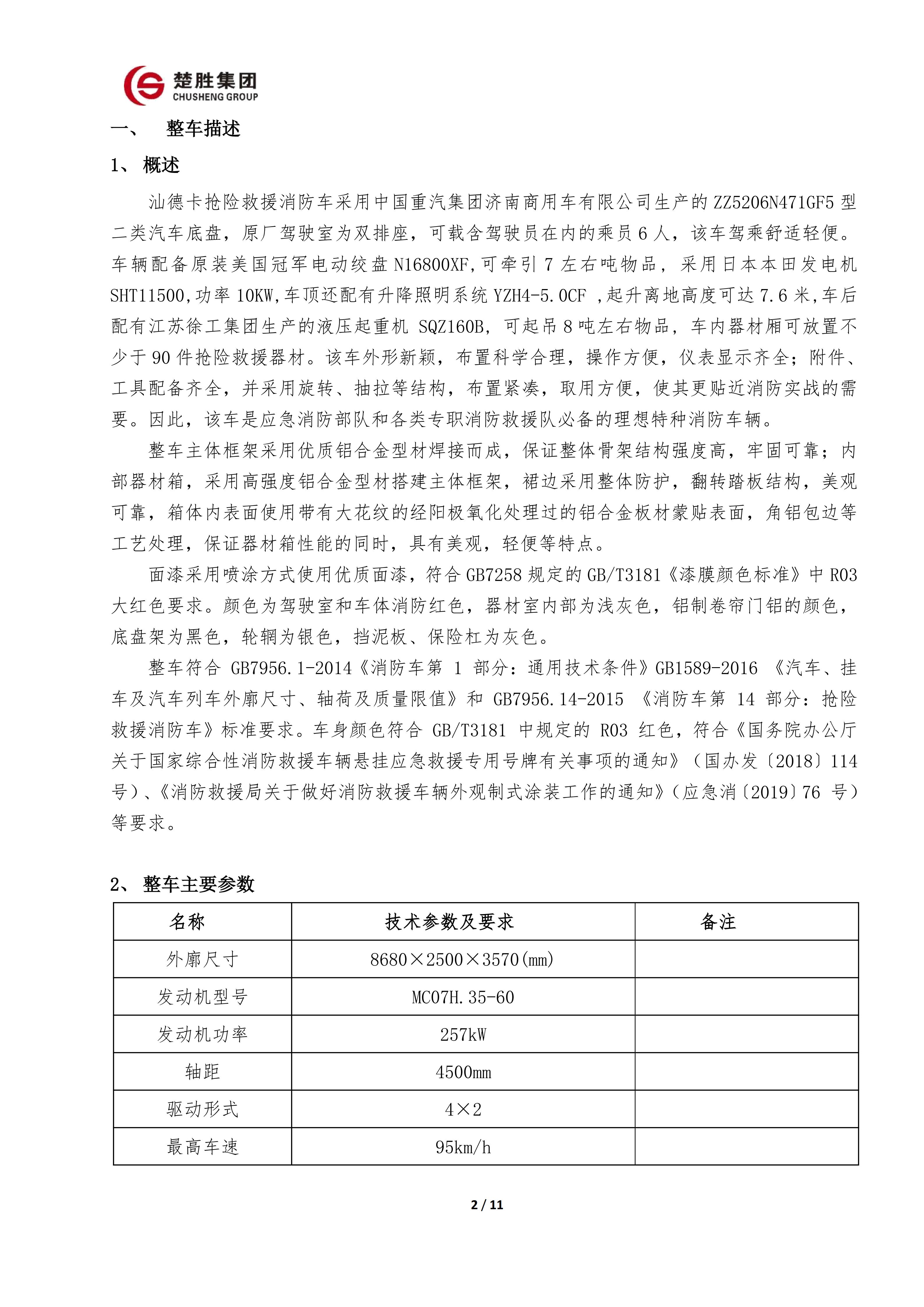 楚勝 CSC5140TXFJY90/S6型搶險(xiǎn)救援消防車(chē)