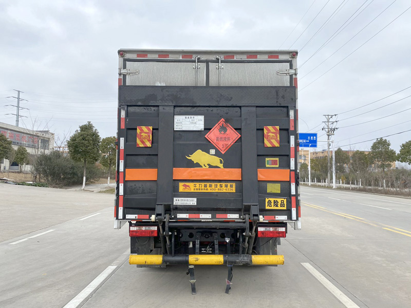 | 其它: | 1、該車適用于運(yùn)輸危險(xiǎn)品,運(yùn)輸具有獨(dú)立容器(瓶)包裝的物品,運(yùn)送危險(xiǎn)物品類項(xiàng)號:3。廂體頂部封閉,不可開啟。2、側(cè)、后防護(hù)材料均為Q235,螺栓連接,后防護(hù)截面尺寸(mm)φ125,下邊緣離地高460mm。選裝后部無尾板,選裝后部無尾板時(shí)后防護(hù)材料為Q235,焊接,截面尺寸(mm)100×50,下邊緣離地高460mm。3、僅選用排氣管前置、限速裝置(限速80km/h)、前輪盤式制動(dòng)及子午線輪胎的底盤,轉(zhuǎn)向輪安裝輪胎爆胎應(yīng)急防護(hù)裝置。安裝帶有衛(wèi)星定位功能的行駛記錄儀。ABS系統(tǒng)控制器型號/生產(chǎn)廠家: ABS/ASR-24V-4S/4M/襄陽東風(fēng)隆誠機(jī)械有限責(zé)任公司。發(fā)動(dòng)機(jī)/油耗值(L/100km)對應(yīng)關(guān)系為: ZD30D16-6N/17.2,YCY24140-60/16.5, NV30-C6G/17.3, CY4SK261/17.4, YCY30165-60/17.5, CY4BK361/17.9。選裝ETC。隨底盤選裝駕駛室。廂體側(cè)面選裝開門型式及位置,選裝不帶側(cè)開門,選裝廂體樣式,廂體側(cè)面板選裝開百葉窗。僅采用軸距3308mm。尾板收起狀態(tài)水平長度為290mm,尾板質(zhì)量為420kg。 | ||