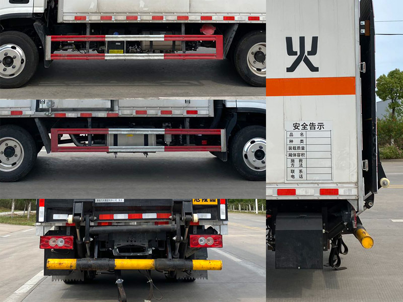 | 其它: | 1、該車為危險(xiǎn)品運(yùn)輸車,運(yùn)輸具有獨(dú)立容器(瓶)包裝的物品,運(yùn)送危險(xiǎn)物品類項(xiàng)號(hào):9。廂體頂部封閉,不可開啟。2、側(cè)、后防護(hù)材料均為Q235,螺栓連接,后防護(hù)截面尺寸(mm)Φ100,下邊緣離地高390mm。選裝后部無尾板時(shí),后防護(hù)材料為Q235,螺栓連接,截面尺寸(mm)120×60,下邊緣離地高400mm。尾板收起狀態(tài)水平長(zhǎng)度為280mm,尾板質(zhì)量為350kg。3、整備質(zhì)量含備胎,滅火器及隨車工具;貨廂重量為1050kg;材質(zhì)/厚度:復(fù)合板結(jié)構(gòu)廂體:底板材質(zhì)為Q235,厚度4mm,側(cè)板為外Q235+中間阻燃泡沫+內(nèi)純鋁板,厚度42mm;瓦楞板結(jié)構(gòu)廂體:底板材質(zhì)為Q235,厚度4mm,側(cè)板為Q235,厚度1.5mm。4、僅選用排氣管前置、限速裝置(限速80km/h)、前輪盤式制動(dòng)及子午線輪胎的底盤,轉(zhuǎn)向輪安裝輪胎爆胎應(yīng)急防護(hù)裝置。安裝帶有衛(wèi)星定位功能的行駛記錄儀。ABS系統(tǒng)控制器型號(hào)/生產(chǎn)企業(yè): :YF8/武漢元豐汽車電控系統(tǒng)有限公司,ABS-E/威伯科汽車控制系統(tǒng)(中國(guó))有限公司,ABS-VI·E/廣州瑞立科密汽車電子股份有限公司,YF9/武漢元豐汽車電控系統(tǒng)有限公司。發(fā)動(dòng)機(jī)/油耗值(L/100km)對(duì)應(yīng)關(guān)系為: D20TCIF2/11.22,D25TCIF1/11.16, D20TCIF1/11.22。僅選用3360mm軸距,選裝ETC。廂體側(cè)面選裝開門型式及位置,選裝不帶側(cè)開門,選裝瓦楞板結(jié)構(gòu);廂體前后及側(cè)面選裝開百葉窗,選裝后尾板樣式,選裝無后尾板。 |