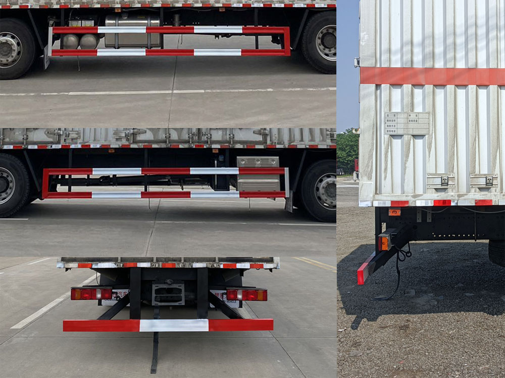 | 其它: | 1、該車為危險品運輸車.運輸具有獨立容器(瓶)包裝的易燃液體物品.運送危險物品類項號:3類.廂體頂部封閉不可開啟.2、側、后防護材料均為Q235,焊接;后防護截面尺寸(mm)120×50,下邊緣離地高490mm。廂體側面選裝開門型式及位置,選裝不帶側開門,選裝貨廂平面或瓦楞結構;廂體側面選裝開百葉窗,選裝后部樣式。3、僅選用1800+5600mm軸距,僅選用排氣管前置、限速裝置(限速80km/h)、前輪盤式制動及子午線輪胎的底盤,轉向輪安裝輪胎爆胎應急防護裝置,后軸采用空氣懸架,安裝帶有衛(wèi)星定位功能的行駛記錄儀,隨底盤選裝駕駛室,選裝前部燈具,選裝ETC。EBS型號/廠家:EBS3/威伯科(上海)管理有限公司。發(fā)動機/油耗值(L/100km)對應關系為:MC07H.35-60/32.45,MC07.31-60/32.43,MC07.27-60/32.43,MC07.25-60/32.43,WP7H270E62/32.15,WP7H245E62/32.15,WP7H220E62/32.15,WP7H320E62/32.60,WP7H300E62/32.60。 | ||