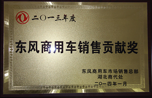 廈工楚勝獲得2013年東風商用車銷售貢獻獎