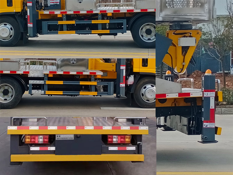 | 其它: | 1、該車用途為搶修電力、通訊、路燈等高空作業(yè),主要裝置為升降平臺、作業(yè)臂。2、側(cè)、后防護(hù)材料均為Q235,側(cè)防護(hù)螺栓連接;后防護(hù)焊接,截面尺寸:100×50mm,下邊緣離地高380mm。3、液剎ABS系統(tǒng)型號/生產(chǎn)廠家:3550A500/浙江亞太機(jī)電股份有限公司,APG3550500A/浙江亞太機(jī)電股份有限公司,氣剎ABS系統(tǒng)型號/生產(chǎn)廠家:CM4XL-4S/4M/廣州瑞立科密汽車電子股份有限公司。4、隨底盤:選裝輪輞。選裝前霧燈。選裝前部標(biāo)識。選裝駕駛室側(cè)面標(biāo)識。選裝短桿外后視鏡。選裝長桿外后視鏡。選裝不帶前霧燈。選裝不帶車輪裝飾罩。選裝鋁合金輪輞。選裝前下視鏡。 | ||