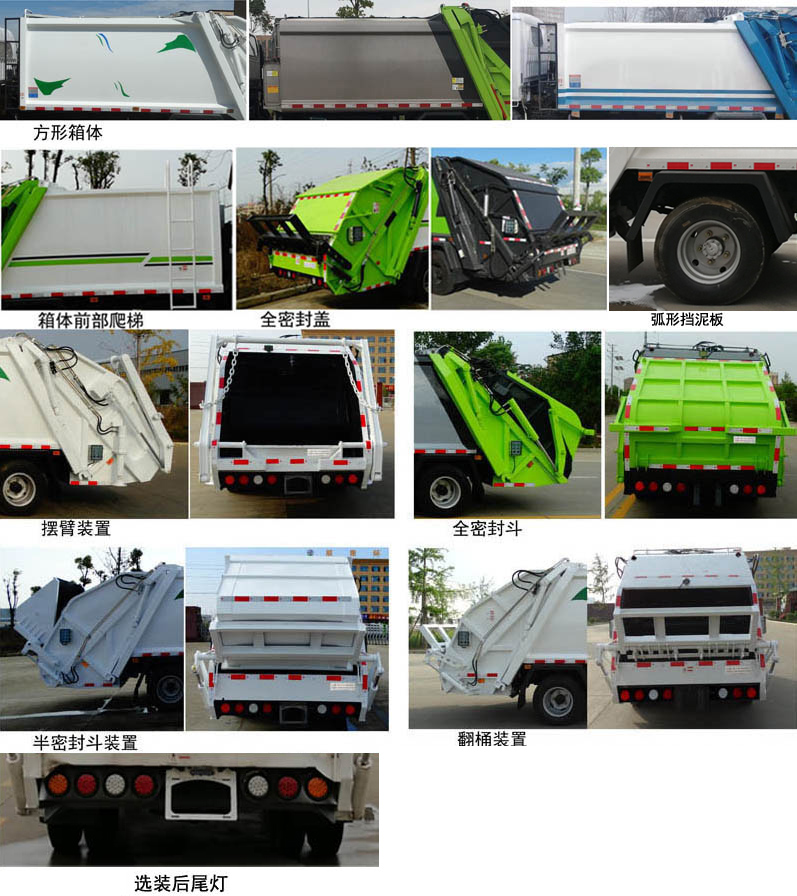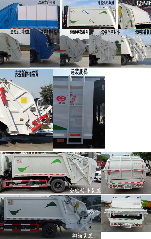配置  1、該車主要專用裝置由箱體、壓縮系統(tǒng)組成,用于垃圾的收集與清運。該車可選裝方形或弧形箱體,選裝全密封蓋裝置,選裝方形擋泥板,選裝箱體前部爬梯,選裝后部工作裝置。選裝工作裝置時,外形長(mm)/后伸(mm)/整備質(zhì)量(kg)對應(yīng)關(guān)系:①無上料裝置: 6525/-/5530;②擺臂裝置: 6685/160/5850;③全密封斗裝置:6725/200/5850;④翻桶裝置,半密封斗裝置:6925/400/5850。2、側(cè)防護采用冷彎型鋼/Q235,螺栓連接;后防護由專用裝置替代,下邊緣離地高500mm。3、ABS系統(tǒng)型號:VIE ABS-II,ABS系統(tǒng)生產(chǎn)廠家:浙江萬安科技股份有限公司。發(fā)動機JX4D30D6H的油耗值為13.9 L/100km。隨底盤選裝左右車門上方黑色貼膜可選擇取消。選裝輪輞外觀。選裝前臉、前部燈具。該車型可選裝ETC車載裝置.