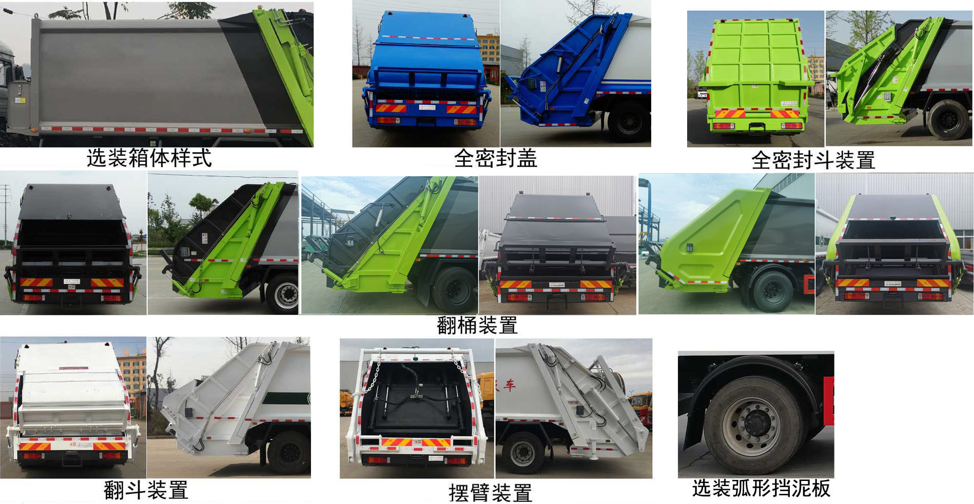 | 配置 | 1、該車主要專用裝置由箱體、壓縮系統(tǒng)組成,用于垃圾的收集與清運(yùn)。該車可選裝方形或弧形箱體,選裝全密封蓋裝置,選裝方形擋泥板。選裝后部工作裝置。選裝工作裝置時(shí)外形長/后伸對(duì)應(yīng)關(guān)系為(mm):①無上料裝置:8680/-;②全密封斗裝置和擺臂裝置:8880/4500/200;③翻桶裝置和翻斗裝置:9080/400。僅采用4500mm軸距。2、側(cè)防護(hù)采用冷彎型鋼/Q235,螺栓連接;后防護(hù)由專用裝置替代,下邊緣離地高:500mm。3、隨底盤選裝前圍和燈具,選裝寬體保險(xiǎn)杠,腳踏板。安裝帶有衛(wèi)星定位功能的行駛記錄儀。ABS系統(tǒng)生產(chǎn)廠家:長春瑞立科密汽車電子有限公司,型號(hào):CM4XL。采用的發(fā)動(dòng)機(jī)與油耗值對(duì)應(yīng)關(guān)系為(L/100Km):CA4DK1-22E6/25.6,CA4DK1-18E6/25.6,CA6DH1-24E6/26.92。 | ||