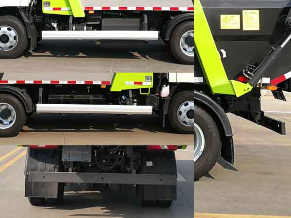 配置  后伸195mm,該車用于垃圾轉運,主要專用裝置為箱體,壓縮系統(tǒng)。側防護材料為鋁合金,螺栓連接;后防護材料為Q235,焊接,截面尺寸:120mm×50mm,離地高度:450mm。隨底盤選裝黑色輪輞。ABS系統(tǒng)型號:VIE ABS-II,ABS系統(tǒng)生產(chǎn)廠家: 浙江萬安科技股份有限公司。發(fā)動機JX4D306H的油耗值為14.5L/100km。