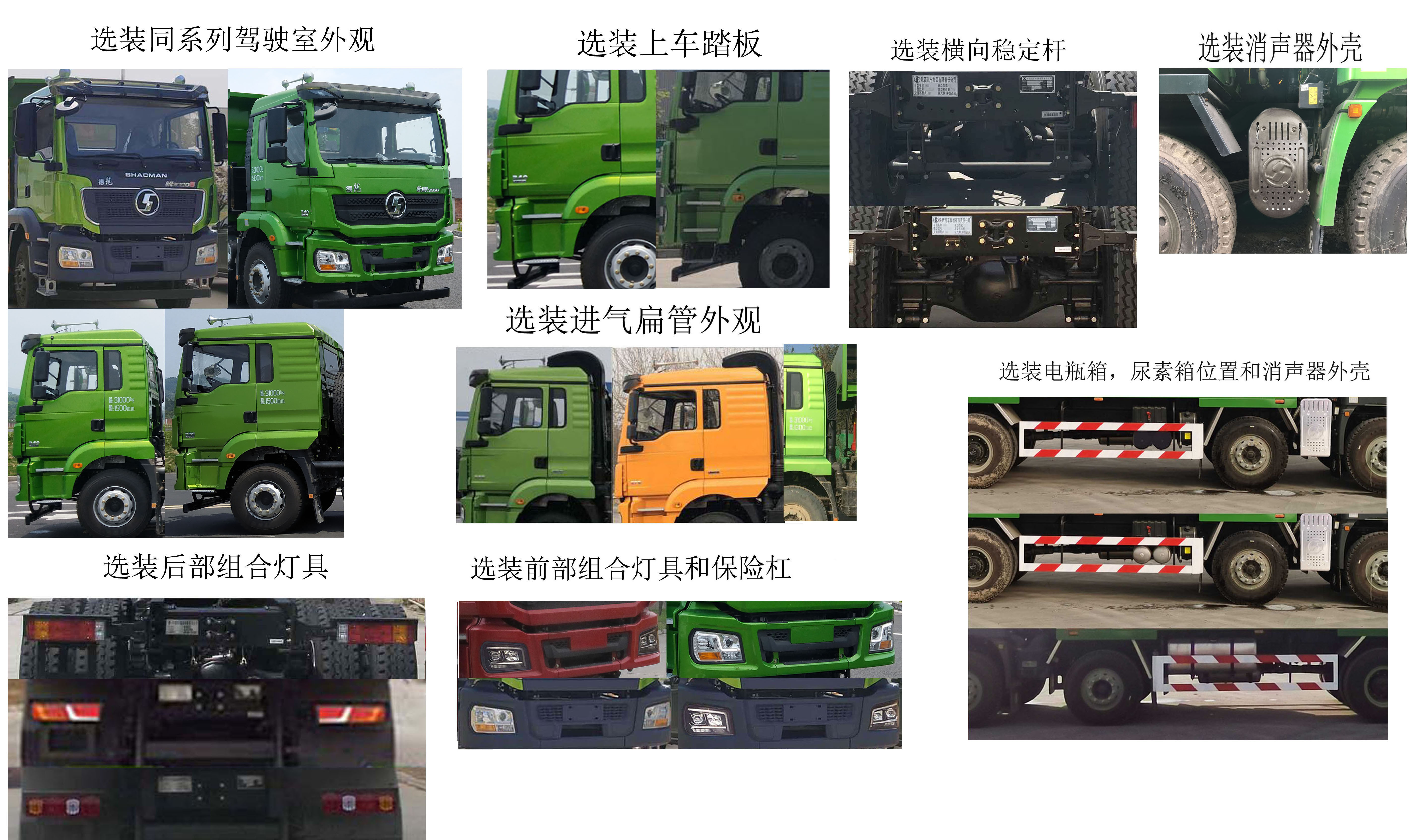 配置  1.在軸距為1800+4175+1400,1950+4025+1400底盤上改裝;2.隨底盤選裝同系列駕駛室,進(jìn)氣扁管,前后組合燈具,電瓶箱位置,尿素箱位置,消聲器外殼,保險(xiǎn)杠,上車踏板和橫向穩(wěn)定桿.3,該車自卸方向?yàn)楹蠓?4,選裝貨箱欄板外觀,環(huán)保折疊篷布.環(huán)保蓋.5.側(cè)后防護(hù)所用材料:Q235;連接方式:螺栓連接;后防護(hù)斷面寬度(mm):50×120;后防護(hù)離地高度(mm):440.4,安裝帶衛(wèi)星定位功能的行駛記錄儀.6,ABS系統(tǒng)生產(chǎn)廠家及型號(hào)分別為:西安正昌電子股份有限公司(型號(hào):ZQFB-V).7,WP10H350E62,WP10H375E62,WP9H336E62,WP9H350E62,WP10H400E62發(fā)動(dòng)機(jī)油耗申報(bào)值均為40.5L/100km.8,整車長(zhǎng)度/后懸/貨箱長(zhǎng)度對(duì)應(yīng)關(guān)系為(mm):10700/1800/7600,10900/2000/7800.